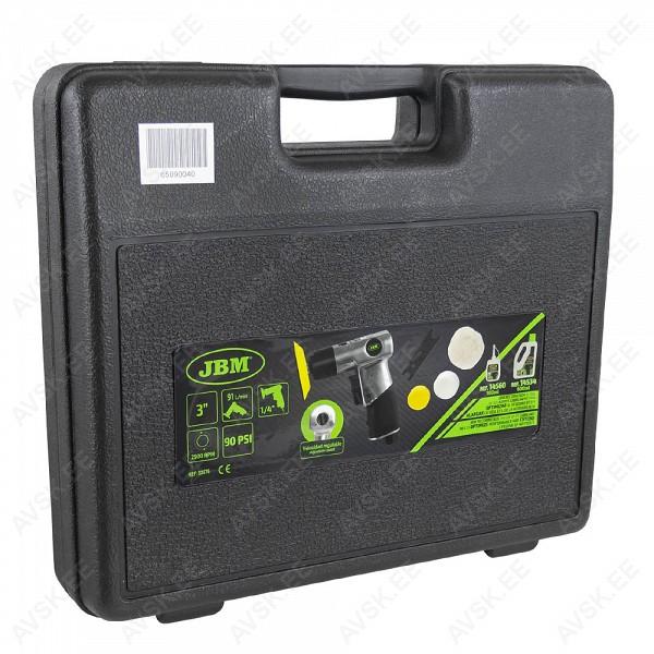 Komplektis: kohver. poleerija ja erinevad padjad. Lihvtalla suurus 75 mm. spindel 1/4. tühikiirus 2500 p/min. pikkus 115 mm. kaal 0.8 kg. keskmine õhukulu 3.2 CFM. 1/4 kiirliide kaasas.