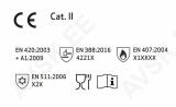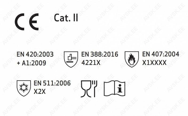 Tehismaterjalist talve kinnas/sünteetiline kinnas. nitriilvaht/vee baasil PU. kattega peopesa. nailon. spandex. 10gg. 15 gg. kootud randmeosa. fliisist vooder. karestatud haardemuster. Cat II. talub kuni 100°C kontaktkuumust. õli- ja määrdeainekindel peopesa. montaažitöö jaoks. kõrge kaitsetase. sõrmeotste hea tundlikkus. elastne. vastupidav. hea haarduvus õlises keskkonnas. eriti mugav. EN 420:2003+A1:2009. EN 388:2016 4221X. EN 407:2004.