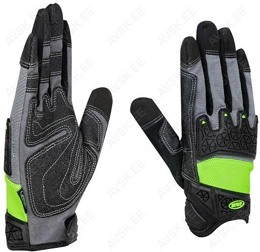Tippkvaliteediga töökindad proffidele. Hingav. spetsiaalsest sünteetilisest kangast kinnas. mida on peopesa osas tugevdatud tikitud patjadega. Kinda seljaosa on katud kummikattega. vältimaks käeselja kahjustamist. Sõrmeotsad on valmistatud spetsiaalmaterjalist. mis võimaldab puutetundlike ekraanide (toutchscreen) kastutust. Takjaspingutusega randmeosa. Kinda haare on tugev ja libisemiskindel - sobib ideaalselt kasutamiseks võtmete. käsitööriistade. elektri- ja  akutööriistade ning lööktööriistadega. Lõikekindlad (1). Riputuspakend.