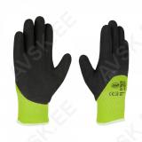 Turvalised nn monoshell talvekindad. Terve kinnas on kudumise teel valmistatud ühest tükist tervikuna. ilma õmblusteta. Seest pehmed ja soojad. Lõikekindlad. kaetud libisemiskindla kummikihiga. Randmeosa on veniv ning kinnast kasutades ei lase lumel või mustusel pääseda kinda sisse. Vastab standardile EN ISO 21420:2020. EN 388:2016+A1:2018. Riputuspakend.