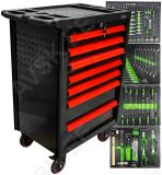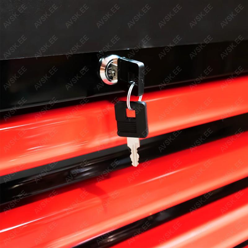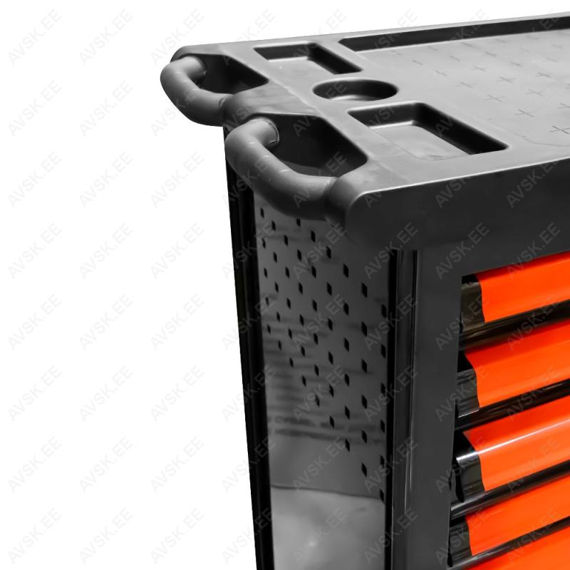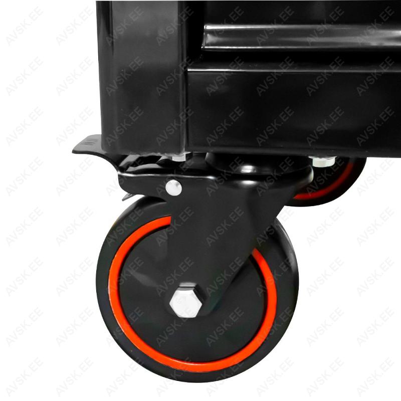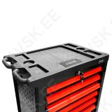 Pulbervärvitud. 7-sahtliga tööriistakäru koos tööriistadega. Tööriistad asuvad pehmetes “foam” paneelides. foam on kaetud pesemiskindla plastikihiga (carbon muster). “Foam” pesa põhi on teist värvi. mis aitab visualiseerida puuduvat tööriista ja selle kuju. Iga tööriista juurde on trükitud mõõt. Neli sahtlit on täidetud tööriistadega. Sahtli mõõdud 5x 530x390x74 mm ja 2x 530x390x151.5 mm. Tööriistakäru sahtlid asuvad rull-laagritel. Kärul on laagritel rattad. millest 2 tk on piduriga ja pööravad. Kapi pealisosa ja sahtli välisosa on on plastkattega. Sahtlitel on kaitselukud s.t ise lahti ei jookse. Kapi kitsamad küljed on perforeeritud. vajadusel saab panna tööriistahoidikud.
