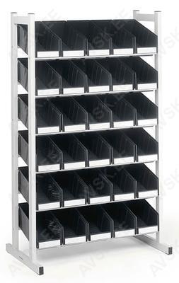 Toode sisaldab halli pulbervärvitud terasraami ja kuut fikseeritud ettepoole kaldus riiulit. Karbid on 20-kraadise nurga all. NB! Karbid tuleb tellida eraldi. Sobivad karbid: 1940 (30 tk), 1950 (30 tk), 3040 (18 tk) ja 3050 (18 tk). Ühe riiuli kandevõime on 50 kg.Välismõõdud P x L x K: 600 x 990 x 1670 mm.