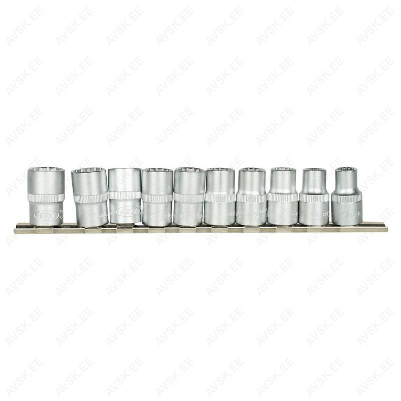 12-kant profiiliga padrunvõtmete komplekt. CrV eriterasest. Matellsiinil.
