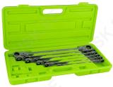 XL-pikkade liigendiga tirrsilmusvõtmete komplekt. Tänu 72H liigendpeale. on võti suurepärane aja kokkuhoidja lahti ja kinnikeeramisel. kitsastes kohtades. Komplektis enamlevinud mõõdud 8x9-10x11-12x13-14x15-16x18-17x19 mm. Valmistatud kroomvanaadium eriterasest. Kroomitud pinnatöötlus. Plastkarbis. NB! Esmane lahitikeeramise moment. samuti lõpp-pingutus teosta alati tavavõtmega!