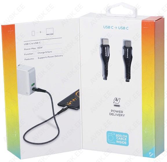 LAADIMISJUHE PÕIMITUD USB-C/USB-C MAX 65W 200CM WAYME