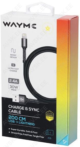 LAADIMISJUHE PÕIMITUD USB - LIGHTNING/APPLE 200CM WAYME