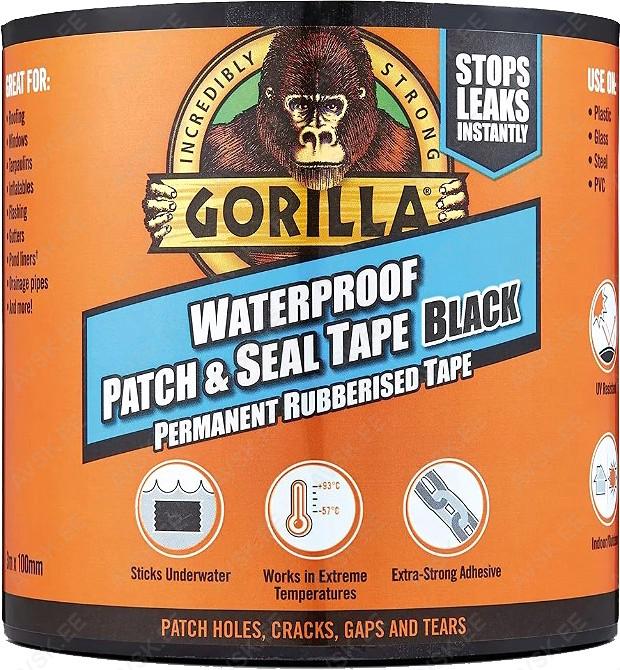 Gorilla veekindel Pach & Seal teip sulgeb koheselt ligipääsu veele. õhule ning niiskusele. Tänu topeltpaksusega liimikihile ja UV kiirgusele vastupidavale pealispinnale sobib see kasutamiseks nii siseruumides kui väljas. Sobib kasutamiseks ka vee all. Topeltpaksusega liim täidab vahed ka krobedatel. ebatasastel pindadel ning kinnitub tugevalt. Tihedalt põimitud kiht teeb Gorilla teibi eriti tugevaks ning vastupidavaks. kuid mugavalt rebitavaks.