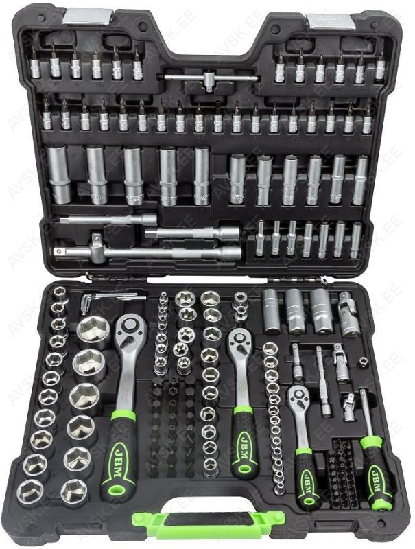 Komplektis mõõdud: 27, 29, 30, 32, 33, 34, 35, 36, 38, 41, 43, 46, 48, 50 mm Mõõdud: 66 mm / 6k, 74 & 76 mm / 15k, 76 mm / 8k, 76 mm / 12k, 76 mm / 14k, 86 mm / 16k, 86 mm / 18k, 92 mm / 10k, 93 mm / 15k, 93 mm / 45k, 96 mm / 18k, 106mm / 15k, 108 mm / 15k, 108 mm / 18k ja kolmijalka-avain 65-120mm. Adapteri 3/8" - 1/2". Mõõdud: 6, 7, 8, 9, 10, 11, 12, 13, 14, 15 16, 17, 18, 19, 20, 21, 22, 23, 24 mm Avainten räikkäpäät on varustettu innovatiivisilla tartuinkynsillä, jotka pystyvät tarrautumaan vielä jopa 85 prosenttisesti pyöristyneeseen pultinkantaan.Sisältää avainkoot 8, 9, 10, 11, 12, 13, 14, 15, 16, 17, 18, 19 mm Tööriistad asuvad pehmetes "EVA"-paneelides. Paneelide pesa on teist värvi, mis aitab märgata puuduva tööriista kuju. 15-Osainen sarja sisältää erikoislyhyet kiintolenkkiavaimet:- 8, 9, 10, 11, 12, 13, 14, 15, 16, 17, 18, 19, 20, 21, 22 mm Tööriistad asuvad pehmetes "EVA"-paneelides. Paneelide pesa on teist värvi, mis aitab märgata puuduva tööriista kuju. 21-Osainen XZN-hylsysarja sisältää:- 50 mm pitkät M5, M6, M8, M9, M10, M12- 95 mm pitkät M5, M6, M8, M9, M10, M12- 135 mm pitkät M5, M6, M8, M9, M10, M12- 195 mm pitkät M8, M10, M12 Tööriistad asuvad pehmetes "EVA"-paneelides. Paneelide pesa on teist värvi, mis aitab märgata puuduva tööriista kuju. 24-Osainen kuusiokolohylsysarja sisältää: - 50 mm pitkät 5, 6, 7, 8, 10, 12 mm- 95 mm pitkät 5, 6, 7, 8, 10, 12 mm- 135 mm pitkät 5, 6, 7, 8, 10, 12 mm- 195 mm pitkät 5, 6, 7, 8, 10, 12 mm Tööriistad asuvad pehmetes "EVA"-paneelides. Paneelide pesa on teist värvi, mis aitab märgata puuduva tööriista kuju. 24-Osainen Torx-hylsysarja 3/8" vääntiölla sisältää:- 50 mm pitkät T20, T25, T27, T30, T40, T45, T50, T55- 95 mm pitkät T20, T25, T27, T30, T40, T45, T50, T55- 135 mm pitkät T40, T45, T50, T55- 195 mm pitkät T40, T45, T50, T55 Alumiiniumkarkassil, alumiiniumkattega külgedega tööriistakast koos volditava põhjaga, lukustatav spetsifikatsioon: 1 lõikenuga 155 mm, tera 18 mm 10 varutera, 18 mm 1 universaalne mutrivõti, 200 mm 1 veepumbatangid , 250 mm 1 tangid, 175 mm 1 "telefoni" tangid, 200 mm 1 vesilood, 230 mm 1 mõõdulint, 15 mm x 3 m 1 reveresiga knarre 6.3 mm (1/4"), 72 teeth 1 pikendus, sise/välis mõõt 6....