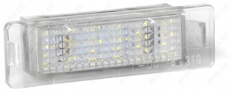 12 V LED numbritulede komplekt. E-markeeritud. Tules on kasutatud OSRAM Opto Semiconductors LED elemente. LEDi tüüp 18xSMD. Värvus 5000 K. CANBUS veateate eemaldajaga. OEM 1224102. 90241129.