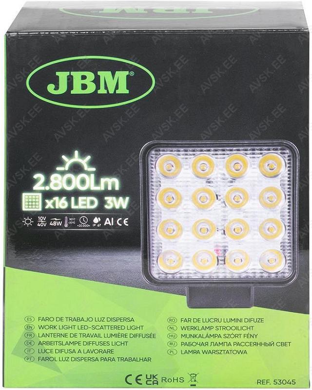 Alumiiniumkorpusega korralik töötuli. 2800 lm valgusjõud. 9-48 V pingega elektrisüsteemidele. Roostevabast terasest kinnitusjalg ja hoidepolt. Võimsus 48 W. Kõrgus 150 mm. laius 110 mm. paksus 60 mm. Niiskuskindlus IP67.