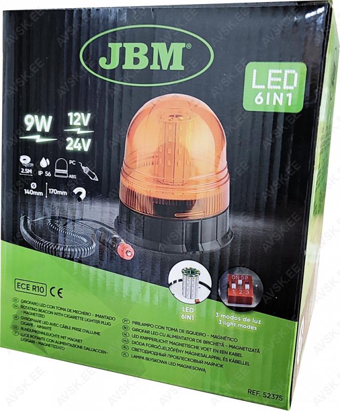 Klassikaline magnetiga LED vilkur. Sobib 12 V ja 24 V elektrisüsteemiga autodele. Koguvõimsus vaid 9 W. 3 erinevat tööreziimi. Vajadusel kinnitatav ka kruvidega. Kõrgus 170 mm. läbimõõt 140 mm. Niiskuskindlus IP65. Vastab normidele E9 10R-046919.