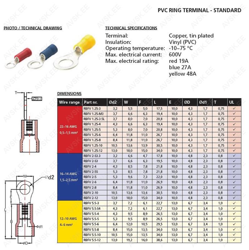 Pressitav PVC isolatsiooniga juhtmeotsik. millel on hea temperatuuritaluvus ja korrosioonikindlus.