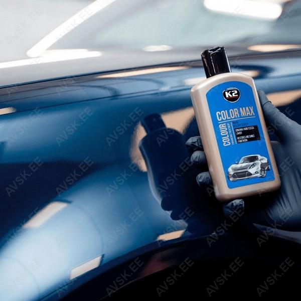K2 Color Max värvivaha sobib igat tüüpi autovärvidele. ka metalliseeritud värvidele. Elustab suurepäraselt värvi ja tänu Carnauba vahale taastab värvipinna endise läike. K2 Color Max värvivaha regenereerib uued ja vanad lakid. värskendab suurepäraselt välimust ja elustab värvi nii uutes kui ka vanades värvides. See on mõeldud kasutajatele. kes soovivad parandada värvikatte seisukorda. ilma värvikatet mehaanilise poleeriga korrigeerimata. Täidab tõhusalt kõik laki ebatasasused ning kõvenedes loob ühtlase ja sileda pinna. Maskeerib suurepäraselt väiksemad kriimud. mõrad ja muud värvidefektid. Peale tooniva vaha kasutamist muutub autovärv ühtlasemaks. mis saab tagasi oma sära ja atraktiivse välimuse. Lihtne peale kanda. Poleerimine ei nõua jõu kasutamist. Seda ei tohi kanda kuumale lakile otsese päikesevalguse käes.