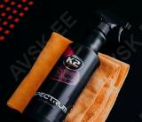 Sünteetilise vaha baasil valmistatud meeldiva ja intensiivse lõhnaga kiirvaha. Värskendab pindu. jätab läikiva ja vetthülgava kaitsekihi. Sobib värvi-. plast-. kummi-. kroomitud ja muudele pindadele. Eemaldab tolmu. sõrme- ja veejäljed. kaitseb ilmastikuolude eest. ei jäta triipe. Vahatatud pindadel tugevdab vahakihti ja pikendab selle vastupidavust. vahatamata pindadele annab läike ja kaitse. Kasutamine: pihustage pinnale. pühkige lapiga pind kuivaks. vajadusel poleeriga õrnalt mikrofiiberlapiga K2 Bona (art. K2L430).