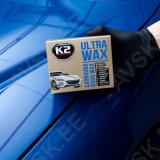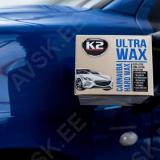 K2 ULTRA WAX on kvaliteetne universaalne pasta kujul olev kõvavaha. mis on mõeldud igat tüüpi värvidele (tavaline. metalliseeritud. pärlmutter jne). millega saate oma auto kere särama panna ja kaitsta seda. Spetsiaalselt välja töötatud valem ühendab endas loodusliku CARNAUBA vaha ja polümeeri nanoosakesi. See kombinatsioon loob värvipinnale isoleeriva kihi. mis säilitab läike ja hüdrofoobse efekti ka peale mitut pesu. K2 ULTRA WAX vahaga kaitstud pind peab suurepäraselt vastu ilmastikutingimuste kahjulikele mõjudele nagu UV-kiirgus ja happevihmad. samuti kaitseb teereostuse eest. Parima visuaalse efekti saavutamiseks soovitame värvi enne toote pealekandmist põhjalikult puhastada. Auto pesemiseks tasub raskema mustuse korral kasutada šampooni K2 EXPRESS ja pigieemaldusvahendit K2 TAR REMOVER.