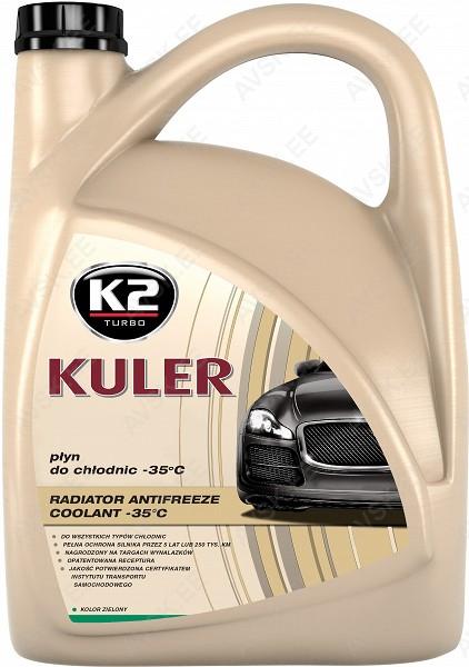 K2 KULER -35°C on kaasaegne. kuid universaalne. kasutusvalmis jahutusvedelik. mida iseloomustavad väga kõrge jõudlusega parameetrid. mis on pärjatud Brüsseli. Genfi ja Souli rahvusvahelisel leiutismessil kuldmedalidega. Spetsiaalselt välja töötatud segu kaitseb suvel mootorit ülekuumenemise ja talvel külmumise eest. Suurepärane karboksüülhapetest koosnev inhibiitorpakett. millele on lisatud spetsiaalseid korrosiooniinhibiitoreid ja vahutamisvastaseid aineid. kaitseb mootorit ja tagab mootori täieliku kaitse 5 aastaks või 250 000 kilomeetriks. ka siis. kui segame seda teiste pikaealiste jahutusvedelikega. K2 KULER -35°C Võib kasutada igat tüüpi radiaatorites. eriti alumiiniumradiaatorites ja segada teiste sama kvaliteetsete jahutusvedelikega. olenemata värvist. K2 KULER -35°C vastab rangetele Ameerika standarditele ASTM D 3306 ja ASTM D 2570. Vedeliku kõrgeimat kvaliteeti kinnitavad Air Force Institute of Technology testid vastavalt PN-C-40007.