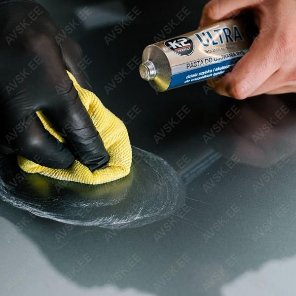 K2 ULTRA CUT on kergelt abrasiivne pasta kriimude. kriimustuste ja värvivigade eemaldamiseks. Toimib tõhusalt igat tüüpi ja värvi lakkidel - traditsioonilistel ja metalliseeritud. Suurepärased abrasiivsed omadused on ühendatud suure kasutuslihtsusega. Pasta on ette nähtud käsitsi kasutamiseks.
