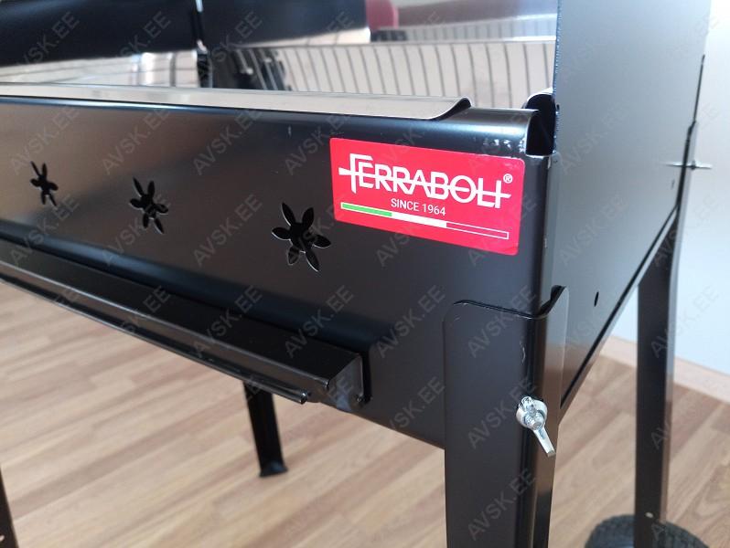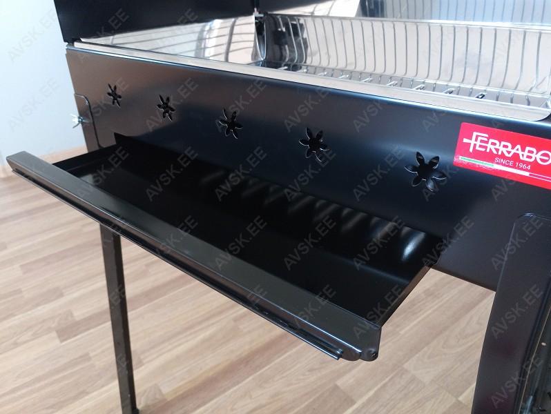 Söevann-mangaal tüüpi söegrill Itaalia tootjalt. Kandmiskäepidemed mõlemal küljel. tugevad L-profiilist jalad. Roostevabast terasest AISI 430 (toiduainetööstuses kasutatav Inox) söevann grilli põhjas. Tuhasahtel. mille abil on võimalik reguleerida ka söele liikuvat õhu hulka. Mõõdud 58x37 cm. kõrgus 84 cm. Komplekteerimisel soovitame kasutada töökindaid. Valmistatud 100% Itaalias. FERRABOLI - Itaalia BBQ seadmete tootja aastast 1964.
