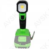 Akutoitega LED käsivalgusti/töövalgusti 20 V. Kolm valgustusreziimi 500-1000 lm ja vilkuv. Reguleeritav asend. Aku ja laadijata mudel. Garantii 12 kuud.