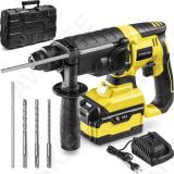 Hea abimees asjalikule meistrimehele kodu renoveerimisel. Soodne lahendus juhtmevabalt SDS-plus puuride hüvede kasutamiseks. Puidu ja metalli puurimiseks saab löögifunktsiooni välja lülitada. Lisakäepideme asendit on võimalikult 360 kraadi ulatuses muuta. LED-valgustus. Komplektis kohver. 3 puuri. 4 Ah aku ja laadija.