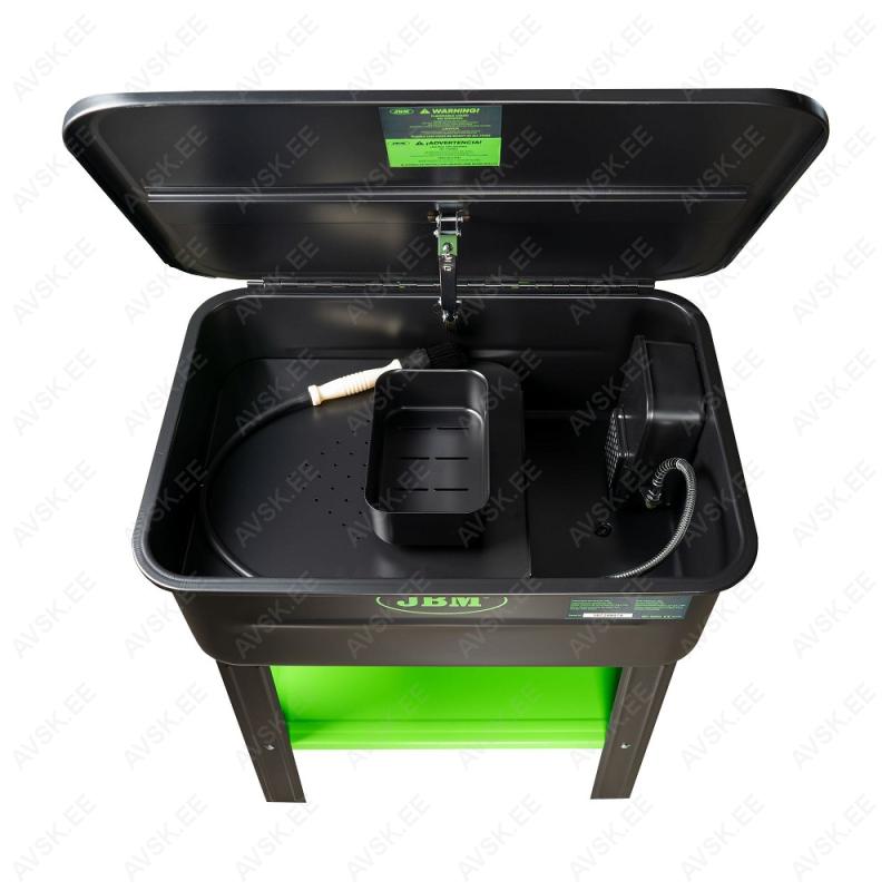 Korralik detailipesu seade väikesemahuliseks detailide puhastustöödeks. Paak 100 l. Pesuvedeliku filter. Nõrgumisplaadiga. pintselvoolikuga detaili pesemiseks. Seade on suletav klappkaanega. Pesuvedeliku maht ca 25 l. Seadmel on jalgade vahel terasest hoideriiul. Laius 725 mm. sügavus 490 mm. Vanni kõrgus ca 260 mm. Seadme kõrgus ca 780 mm. Valmistatud JBM Hiina tehastes.