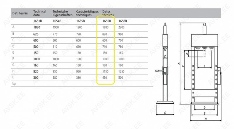 HÜDROPRESS 30T MANOMEETRIGA KÜLGLIIKUV KOLB 1656B APAC