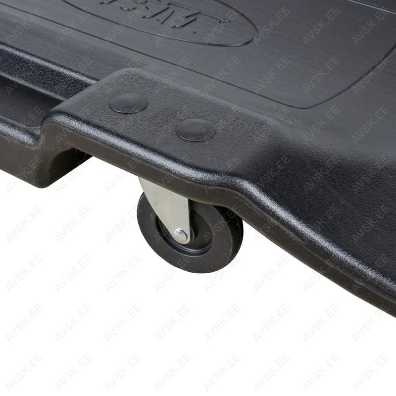 Löögikindlast plastist. suure kandejõuga lamamisalus. 6 rattaga. rattad kaetud plastkummiga. Kandejõud 150 kg - sobib hästi meie tugevatele mehhaanikutele! Pehme kaelapadjaga. Võtmete. poltide. mutrite hoidesüvenditega mõlemas servas. Kõrgus vaid 120 mm. pikkus 1020 mm. laius 480 mm.