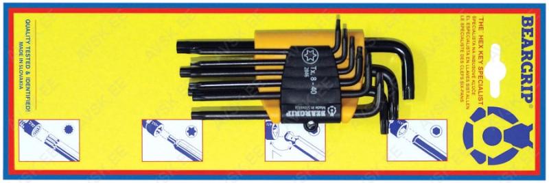 L-torx võtmete komplekt. Plasthoidikus. CrV eriterasest. Profikvaliteet. Fosfaaditud pinnatöötlus. Blisterpakendis.