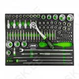 PU-paneelis tööriistade komplekt. mida võib kasutada iseseisvana või siis tööriistakärus või lauasahtlis. Keemia- ja õlikindel materjal. Paneeli mõõdud 400x533 mm.