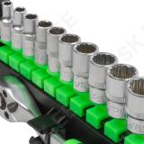Hea komplekt. sisaldades kõik põhilised padrunimõõdud. 12-kant profiiliga padrunid. 72H tirrvõti. komposiitkäepidemega. Plasthoidikus.