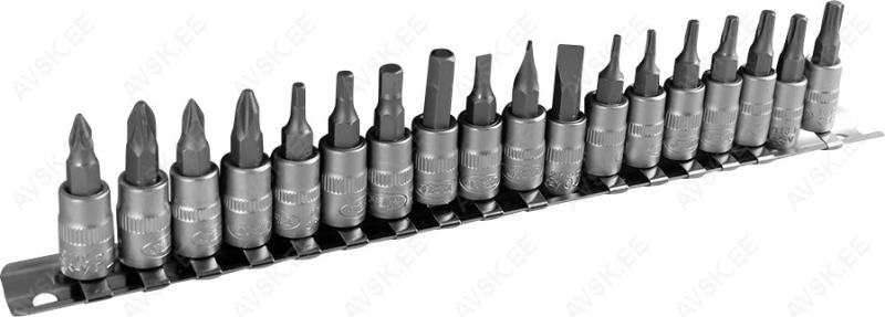 Klassikalised padrunotsikud. mis tarnitakse terasest hoidesiinil. Komplektis 6-kant otsikud. PH otsikud. PZ otsikud. Torx otsikud. Otsikud on valmistatud kvaliteetsest S2 kroomvanaadium eriterasest.