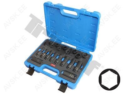 Plastkohvris pikkade ja lühikeste löökpadrunite kompelkt. 6-kant profiil. Kroommolübdeen eriteras. Fosfaaditud pinnatöötlus. Padrunid asuvad pehmes foam-paneelis.