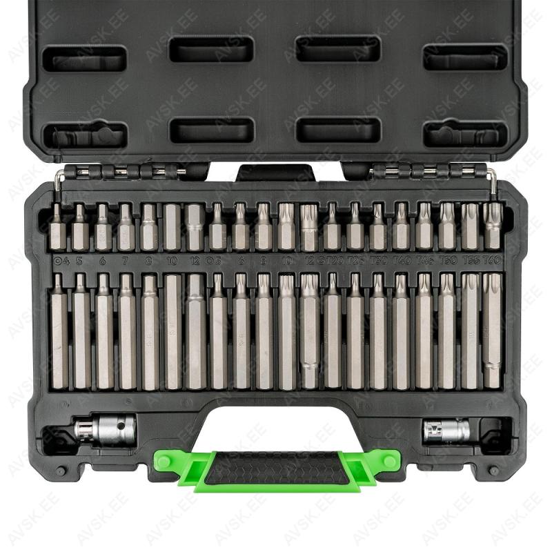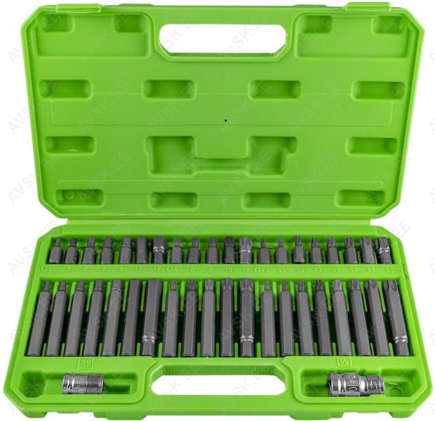 30 mm ja 75 mm pikkuste otsikute komplekt. Kõik enamlevinud mõõdud. Tugevas plastkohvris.