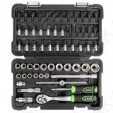 Universaalne tööriistakomplekt kodukasutusse. DYI ja väiksematesse töökodadesse. Matt pinnatöötlus. Kohvri lukustid on terasest. Tugev. uue põlvkonna plastkohver.