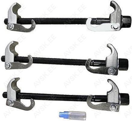 Kolmest 300 mm pikkusest tõmmitsast koosnev komplekt lisab paindlikkust ja turvalisust erinevate keerdvedrude kokkutõmbamisel. Peened haarad lihtsustavad ka tiheda keeruga keerdvedrudega töötamist. Tõmmitsa käppade lukustamise võimalus vedru külge. töö alustamine on lihtsam. väldib tõmmitsa eemaldumist vedru küljest.