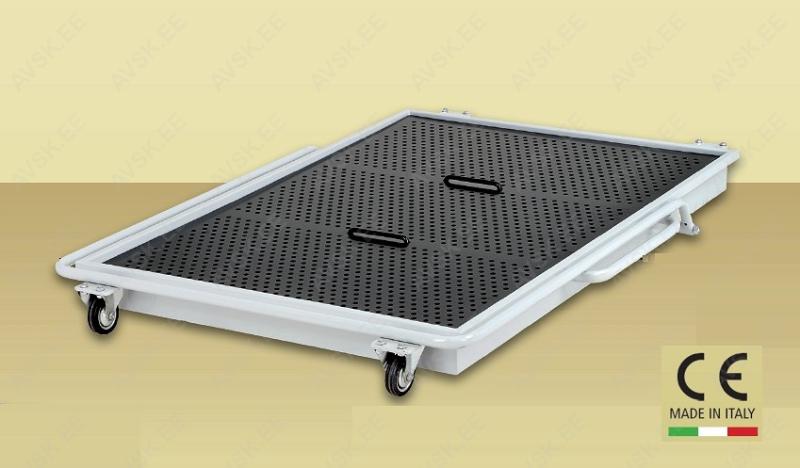 Tugeva teraskonstruktsiooni ja käepidemega ratastel vana õli anum. 70 liitrit. Eriti madal mudel. Mõõdud 1250x825 mm. kõrgus 85 mm. Varustatud kiirvahetusliitmikuga mugavaks ja kiireks tühjendamiseks.