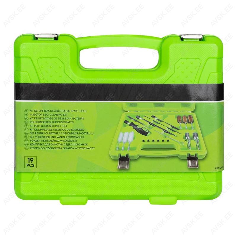 Komplekt sisaldab plokikaanes olevate pihustite avade/põhjade puhastamise tööriistu. Kasutatakse enne pihusti tagasi paigutamist. Korralikus plastkohvris.