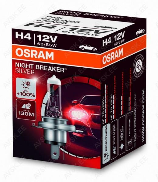 12V H4 PIRN 60/55W P43T NIGHT BREAKER SILVER +100% OSRAM