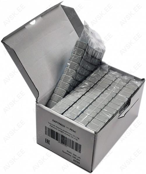 “Made in China” terastasakaal (FE). kõrgus 3.8 mm. Pulbervärvitud. hall. kumerate nurkadega. laia sinise kattekilega. Pakendis 100 tk. 1 tk on 60 g riba. mis on jagatud 12 väiksemaks raskuseks. igaüks 5 g. 60 g riba laius on 19 mm ja pikkus 138 mm. Piisava nakkuvuse saavutamiseks on vajalik minimaalne paigaldustemperatuur +15°C. Enne paigaldust tuleb pinnad korralikult puhastada ja eemaldada niiskus. Vajalik raskus lõigata lõikuriga. mitte rebida! Kinni surumine suunaga keskelt äärtesse! Hoides toodet originaalpakendis. puhtas. kuivas. hästi ventileeritud ruumis on toote säilivusaeg vähemalt 12 kuud.