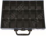 18 pesaga. Sobib peentarvikute sorteerimiseks. Lukk takistab kaane tahtmatut avanemist. Tugev metallkohver. Pulber-emailitud.