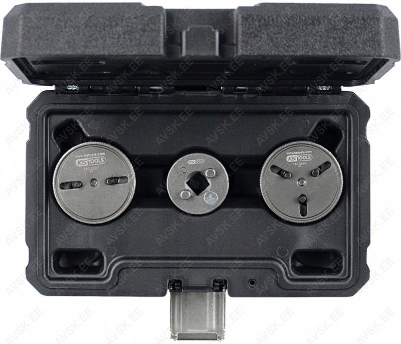 Komplektis mõõdud: 27, 29, 30, 32, 33, 34, 35, 36, 38, 41, 43, 46, 48, 50 mm Mõõdud: 66 mm / 6k, 74 & 76 mm / 15k, 76 mm / 8k, 76 mm / 12k, 76 mm / 14k, 86 mm / 16k, 86 mm / 18k, 92 mm / 10k, 93 mm / 15k, 93 mm / 45k, 96 mm / 18k, 106mm / 15k, 108 mm / 15k, 108 mm / 18k ja kolmijalka-avain 65-120mm. Adapteri 3/8" - 1/2". Mõõdud: 6, 7, 8, 9, 10, 11, 12, 13, 14, 15 16, 17, 18, 19, 20, 21, 22, 23, 24 mm Avainten räikkäpäät on varustettu innovatiivisilla tartuinkynsillä, jotka pystyvät tarrautumaan vielä jopa 85 prosenttisesti pyöristyneeseen pultinkantaan.Sisältää avainkoot 8, 9, 10, 11, 12, 13, 14, 15, 16, 17, 18, 19 mm Tööriistad asuvad pehmetes "EVA"-paneelides. Paneelide pesa on teist värvi, mis aitab märgata puuduva tööriista kuju. 15-Osainen sarja sisältää erikoislyhyet kiintolenkkiavaimet:- 8, 9, 10, 11, 12, 13, 14, 15, 16, 17, 18, 19, 20, 21, 22 mm Tööriistad asuvad pehmetes "EVA"-paneelides. Paneelide pesa on teist värvi, mis aitab märgata puuduva tööriista kuju. 24-Osainen kuusiokolohylsysarja sisältää: - 50 mm pitkät 5, 6, 7, 8, 10, 12 mm- 95 mm pitkät 5, 6, 7, 8, 10, 12 mm- 135 mm pitkät 5, 6, 7, 8, 10, 12 mm- 195 mm pitkät 5, 6, 7, 8, 10, 12 mm Tööriistad asuvad pehmetes "EVA"-paneelides. Paneelide pesa on teist värvi, mis aitab märgata puuduva tööriista kuju. 24-Osainen Torx-hylsysarja 3/8" vääntiölla sisältää:- 50 mm pitkät T20, T25, T27, T30, T40, T45, T50, T55- 95 mm pitkät T20, T25, T27, T30, T40, T45, T50, T55- 135 mm pitkät T40, T45, T50, T55- 195 mm pitkät T40, T45, T50, T55 Alumiiniumkarkassil, alumiiniumkattega külgedega tööriistakast koos volditava põhjaga, lukustatav spetsifikatsioon: 1 lõikenuga 155 mm, tera 18 mm 10 varutera, 18 mm 1 universaalne mutrivõti, 200 mm 1 veepumbatangid , 250 mm 1 tangid, 175 mm 1 "telefoni" tangid, 200 mm 1 vesilood, 230 mm 1 mõõdulint, 15 mm x 3 m 1 reveresiga knarre 6.3 mm (1/4"), 72 teeth 1 pikendus, sise/välis mõõt 6....