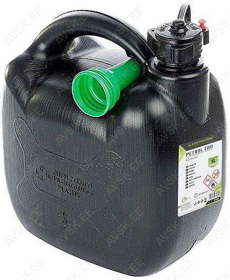 Universaalne plastkanister. mis sobib kütuste ja ka teiste tehniliste vedelike säilitamiseks. Kanistriga on kaasas elastne valamisotsik. mis teeb vedelike valamise veelgi mugavamaks.